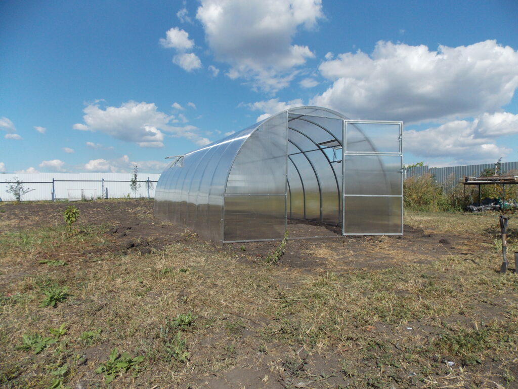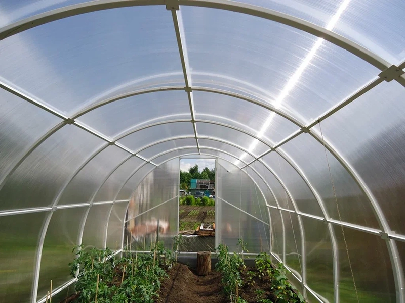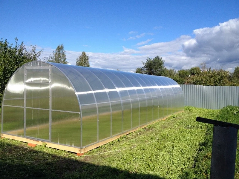 Листовой материал, применяемый для покрытия каркаса, отличаются толщиной и светопропускной способностью. Оптимальная толщина листов составляет 4 или 6 мм. Листы таких размеров сочетают в себе прочность и пластичность, их можно использовать для монтажа прямостенных теплиц и радиусных конструкций.
