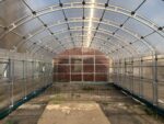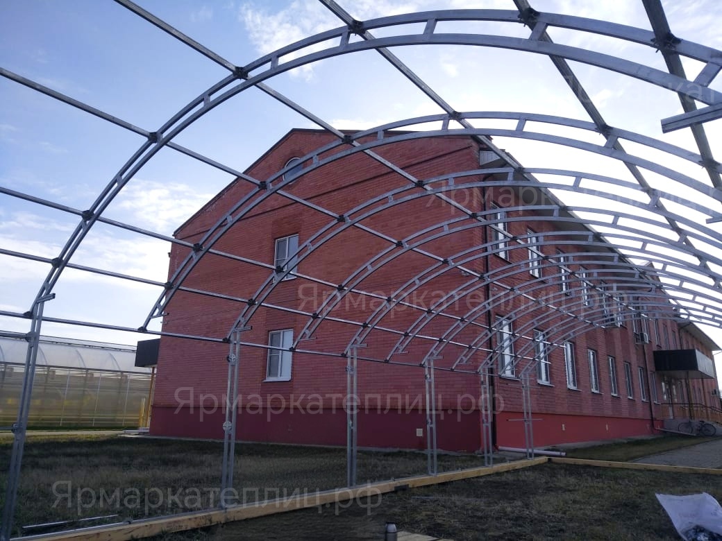 Среднеразмерная фермерская теплица для профессионального использования. Особенности сверхпрочной теплицы : 1) защитные свесы на крыше теплицы; 2) двойные дуги-фермы; 3) современная краб-система; 4)  15 рядов продольных перемычек; 5)Стальная труба в дугах изогнута «на ребро»,6) цельносварные торцы.